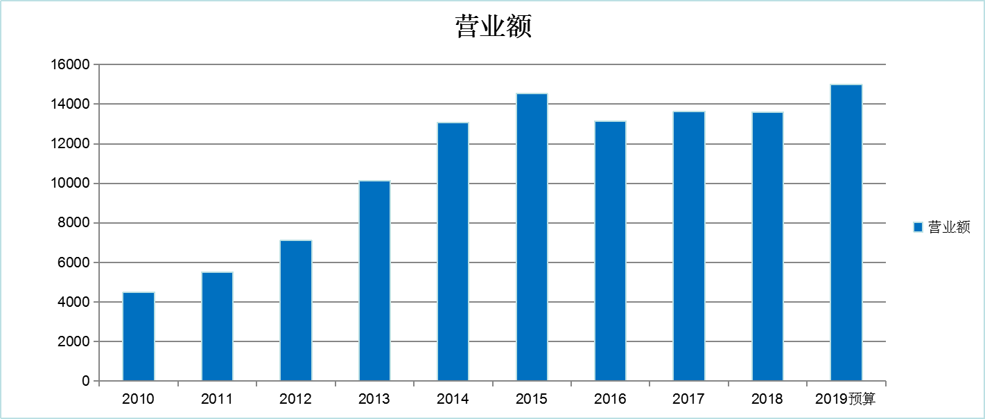 營(yíng)業(yè)額 | 4500 | 5500 | 7100 | 10117 | 13075 | 14533 | 13134 | 13633 | 13585 | 15000 |